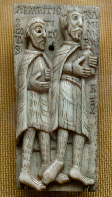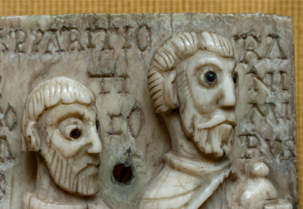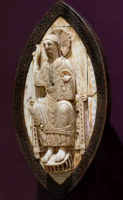 Historical Archive: Ivories from St. Aemilian reliquary Spain, 1060 to 1080 Christ enthroned: ivory on wood with agate eyes, 22.7 x 10.5 cm (8.9 x 4.1 inches) Dumbarton Oaks, Washington D.C., BZ.1948.12 Ramiro and companion panel: ivory with glass, St. Petersburg, Hermitage Ф-2908 Peter and Munius panel: ivory with glass, St. Petersburg, Hermitage Ф-2907 |