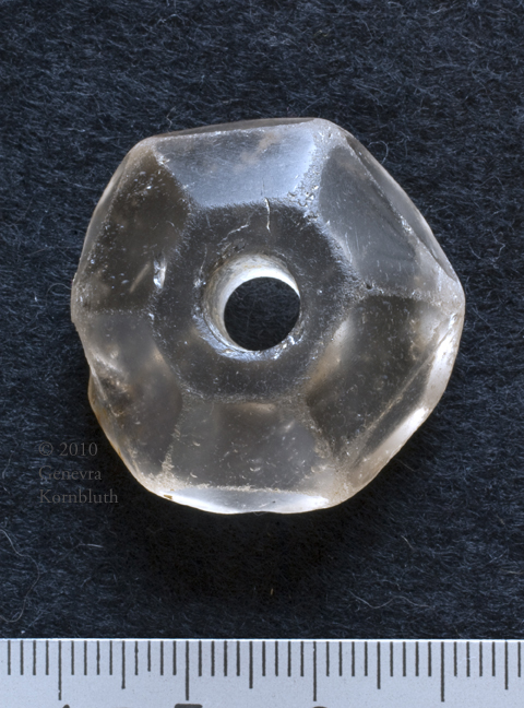 rock crystal faceted spindle whorl: oblique, Alfriston grave 65, c.500-560, Lewes Castle Museum