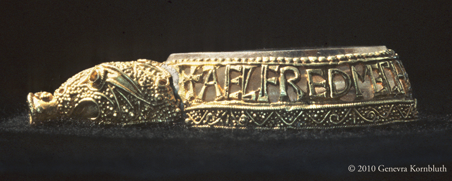 Alfred Jewel: gold, enamel, and rock crystal, late 9th c., Ashmolean
