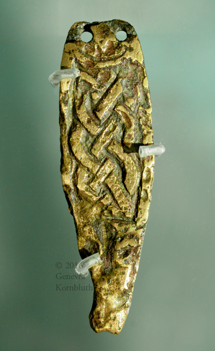 interlace strap end, copper alloy, 9th c., MoL 81.571