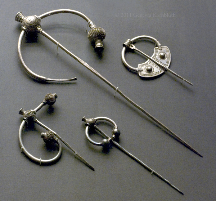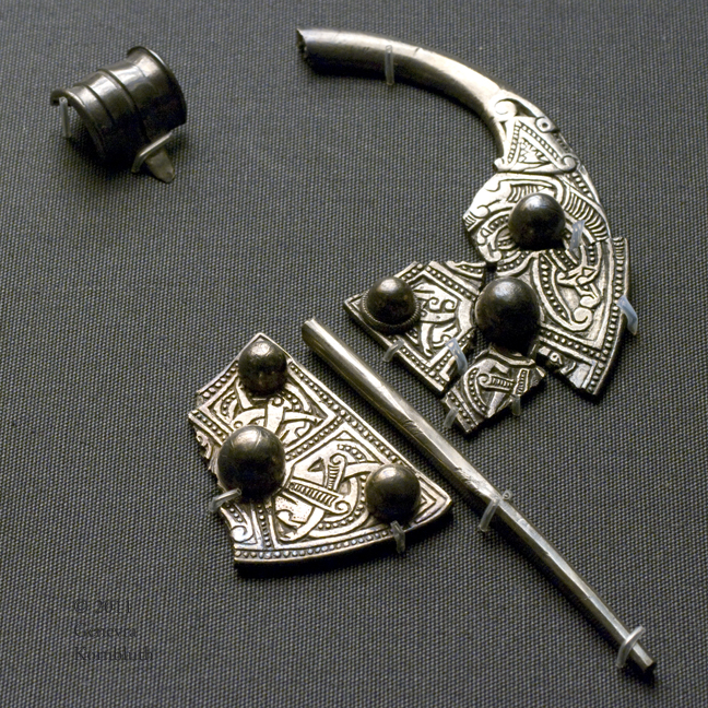 fibulae from Penrith hoard, silver, early 10th c., from Fluskew Pike, Newbiggin, Cumbria, Eng., BM MME 1904,1102.3; 1991,0109.1, .3, .4