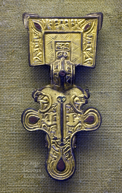 cruciform brooch, copper alloy/gilt/silver/iron, c.500-550 Anglo-Saxo, Morgan 2012.2:72. For detail see Morgan.
