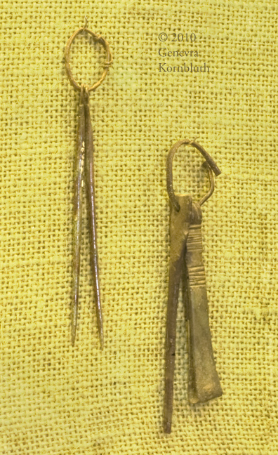 bronze small-long fibulae with amber and crystal beads (one a faceted whorl) from Barrington B, CMAA Z 21298