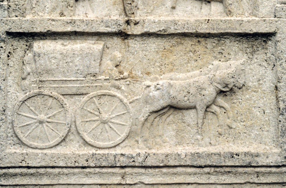 oxen pulling a cart, funerary monument of Flavia Usiau, 2nd half of 2nd c., Tác-Gorsium. This object has its own page. Oxen, bulls, cows, and calves have their own page.
