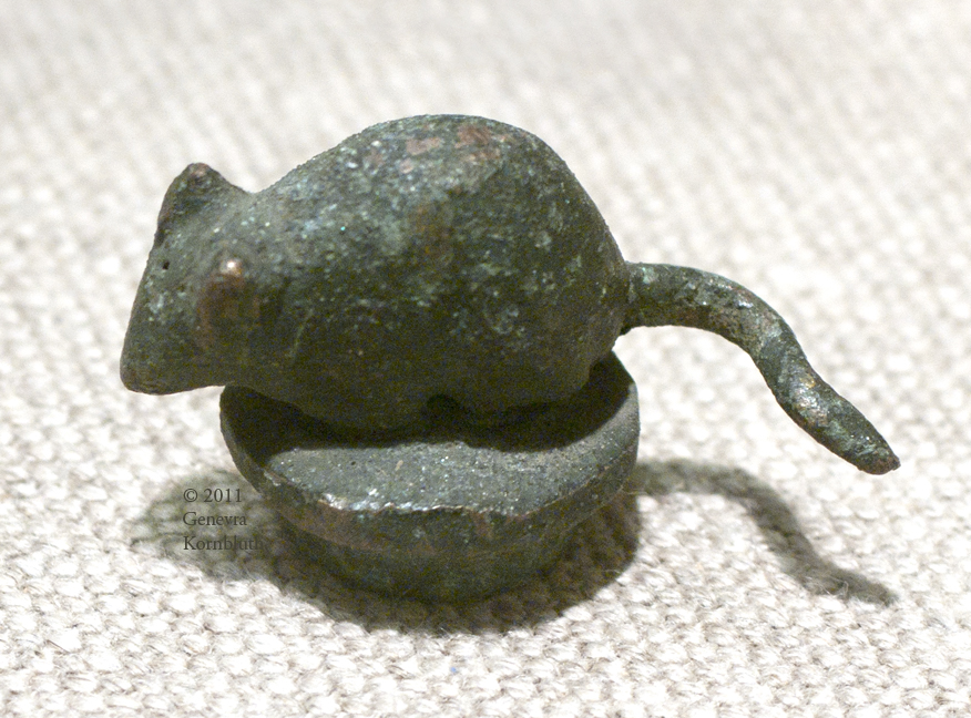 mouse: weight? from lamp holder with lamps, bronze, probably modern replica of Roman from Pompeii, KM 0000.02.9864. This work has its own page.