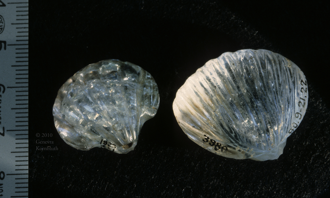 shellfish: Roman scallop shells pierced for suspension, rock crystal, BM. Shellfish have their own page.