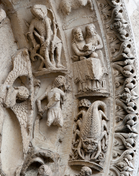scorpion (Scorpio): Chartres west façade center 1140s-c.1150. For more views see Chartres.