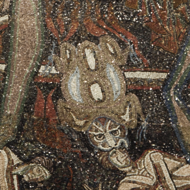 toad: torments of the damned, mosaic c.1260-75, Baptistery of St. John, Florence. Not available at high resolution. This work has its own pages. Frogs and toads have their own page.