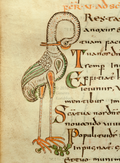 stork: Gellone Sacramentary, c.780-800, BN Lat 12048, which has its own page. For storks see water birds.