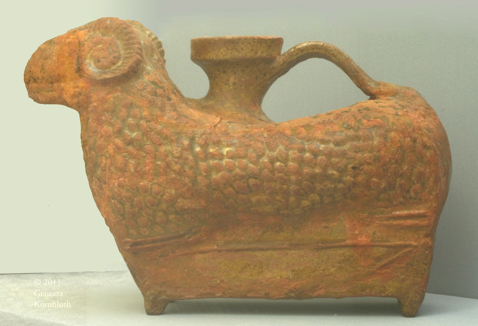 ram: vessel in the form of a ram, ceramic, western provincial Roman, MFAB. Lambs, sheep, and rams have their own page.