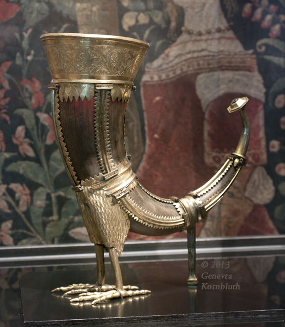 drinking horn with eagle feet: horn, copper, copper gilt; Germany c.1500, Cluny Cl.2324. For details see Cluny.