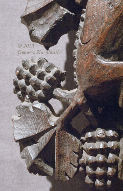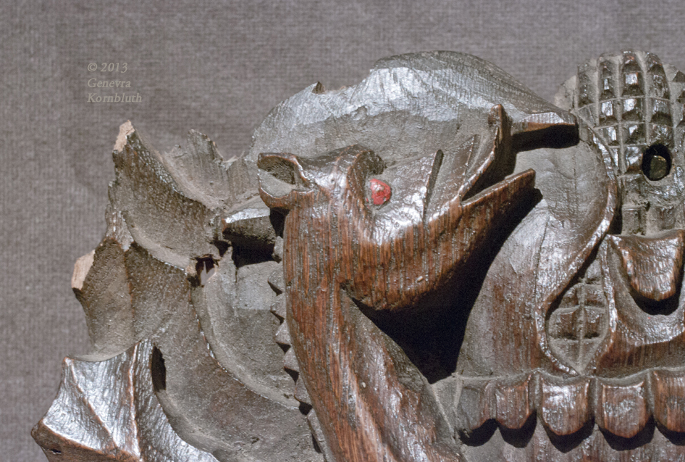 Ceiling boss with dragons, wood with polychrome, England c.1430, prob. from Church of St. Andrews, Cullompton, UMMA 1968/2.46