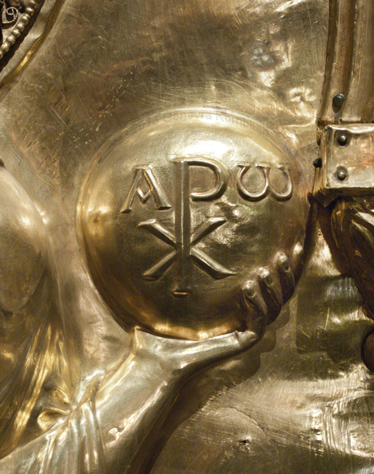 Christ's orb with Chrismon, alpha, and omega