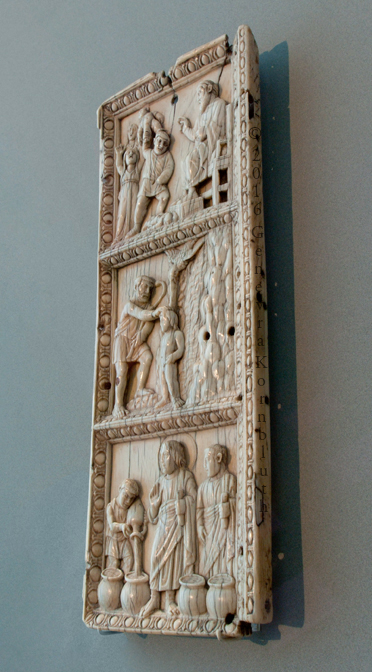 Historical Archive: Berlin Infancy and Miracle ivory 20 x 8.1 x .8 cm (7.9 x 3.2 x .3 inches) western Roman Empire (Rome?), around 400 to first third of fifth century companion panel to Louvre OA 7876, 7877, 7878 Berlin, Skulpturensammlung und Museum für Byzantinische Kunst, Staatlichen Museen zu Berlin: SMBByz 2719