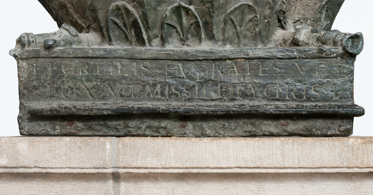 pinecone base inscription, 10th c., Aachen cathedral. The pinecone has its own page.