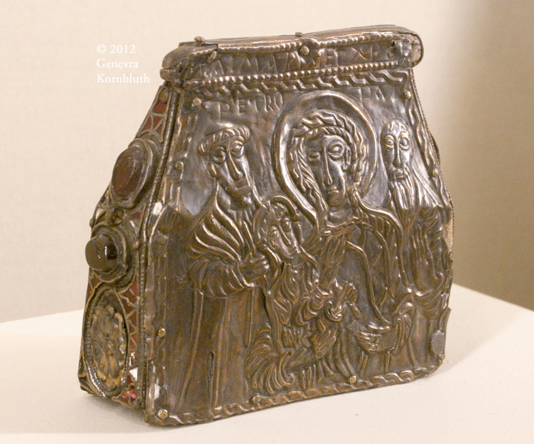 reliquary, silver and copper gilt with glass on wood core, 8th century(?), Cluny Cl. 13968. This work has its own page.