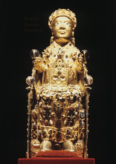 Ste. Foi reliquary (Majesté de Sainte Foi), 9th c. and later, Conques, abbey treasury. For crystal see Conques.