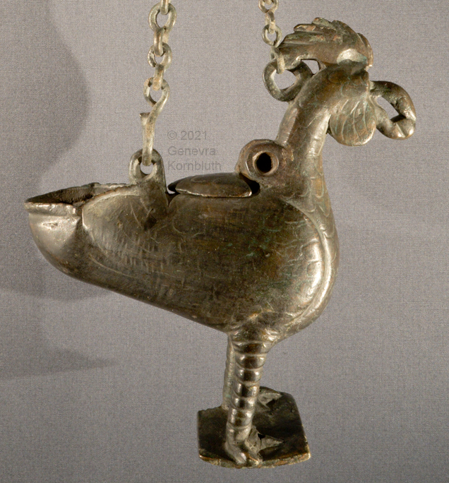bronze lamp: cock, 6th-9th c. Mediterranean, Sch H931. For view with full chain see Schn.