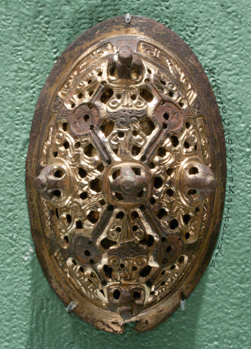 Tortoise brooch fr. Oslo, bronze/gilt, 9th-10th c.? OHM C2222. For profile view with companion brooch see OHM.