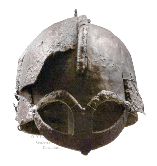 helmet fr. Gjermundbu Farm, iron, c.950-1000, OHM C27317. For game pieces from same grave see OHM.
