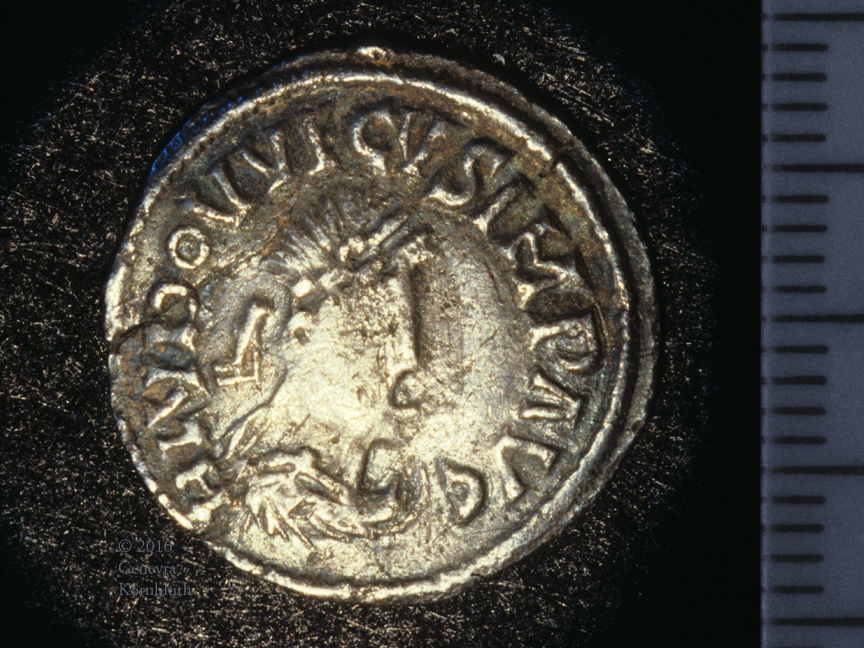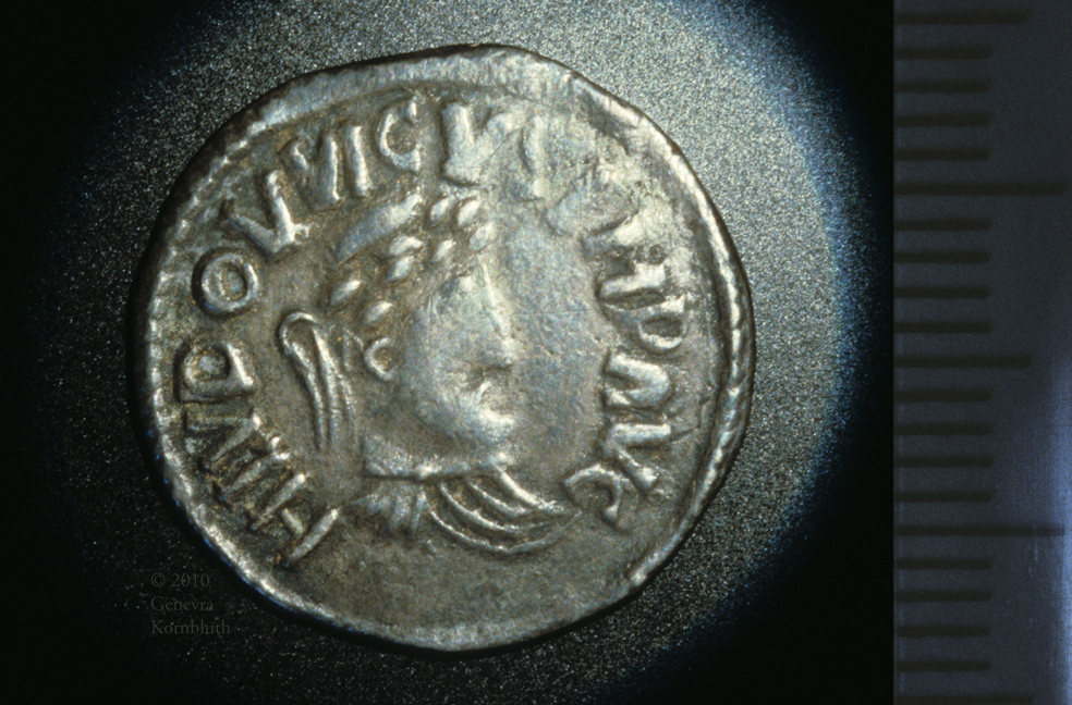 Louis the Pious (814-40) silver denier, Hludovvicus obverse and Remis civis reverse: M-G 357, Reims, ANS 60.87.1