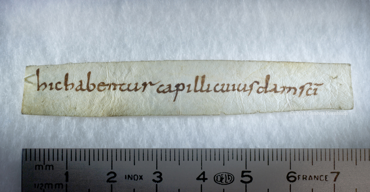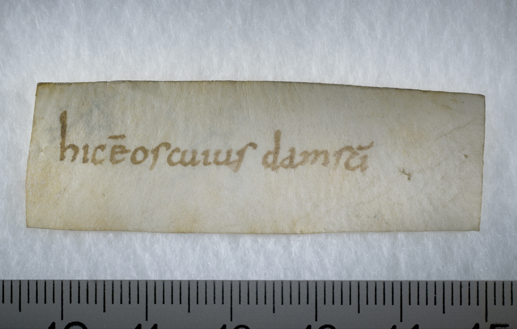 Carolingian relic label, obverse, Sens CT library J81 (Chartraire 154)