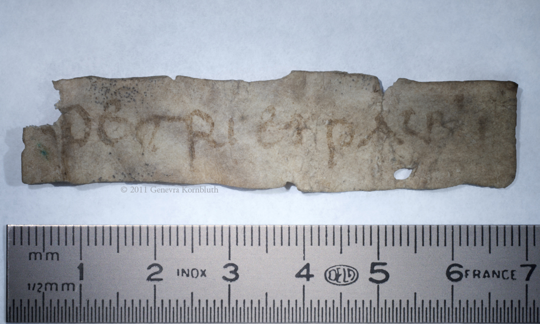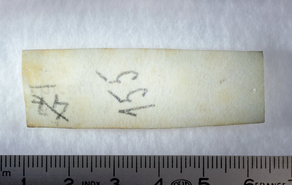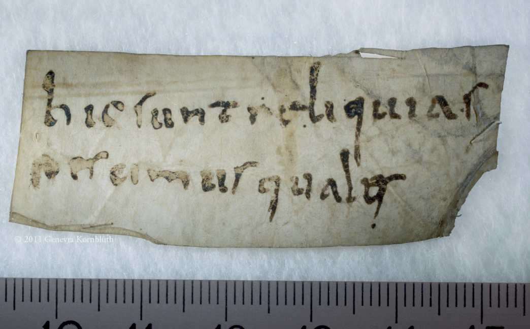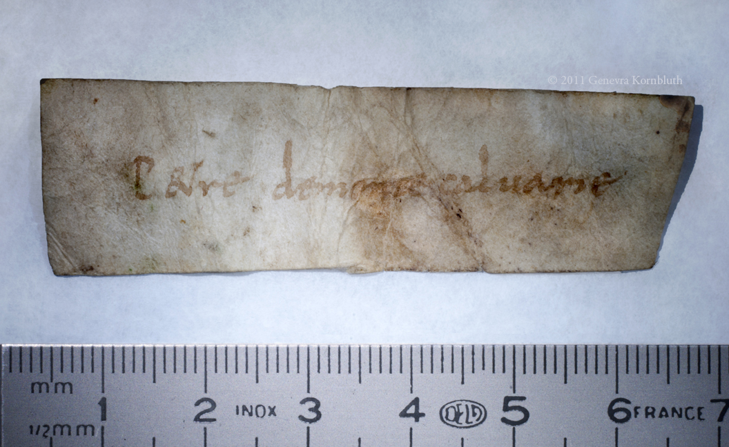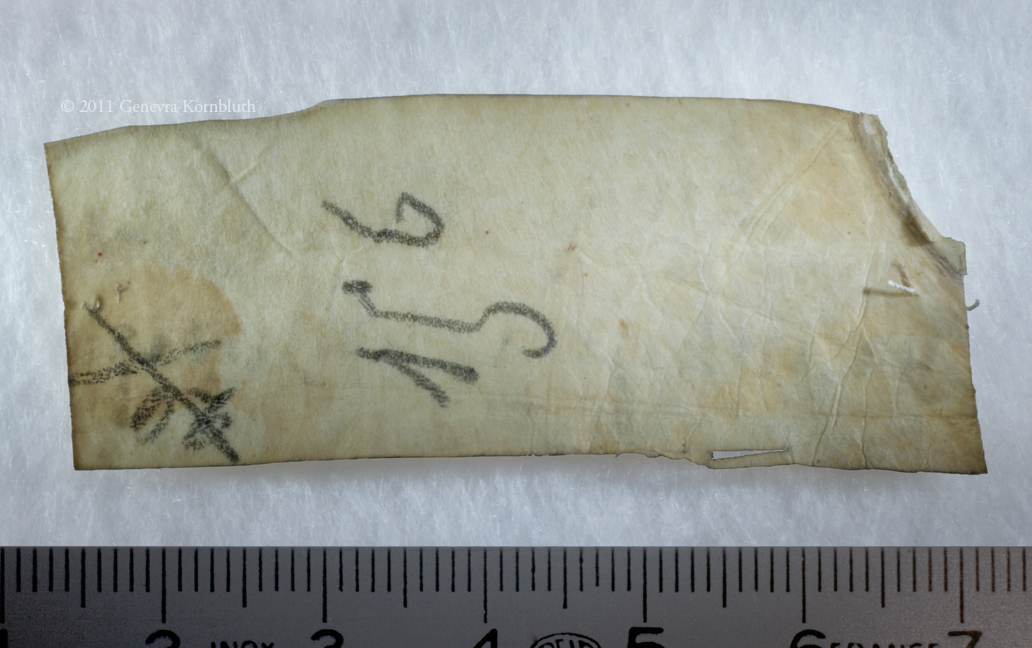 Carolingian relic label, reverse, Sens CT library J36 (Chartraire 156)