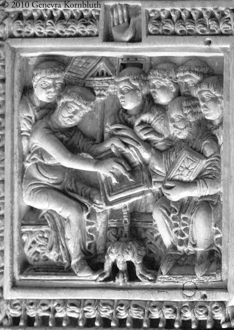 Historical Archive: Dagulf Psalter cover elephant ivory, each panel 16.8-9 x 8.1 cm (6.6 x 3.2 inches) court of Charlemagne, late 8th c., Louvre MR 370 and 371 |