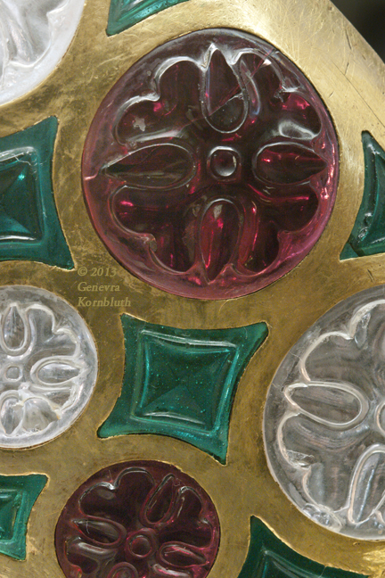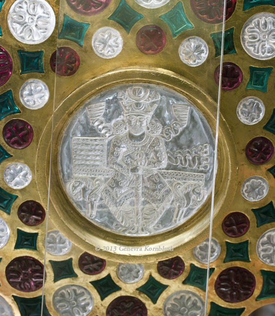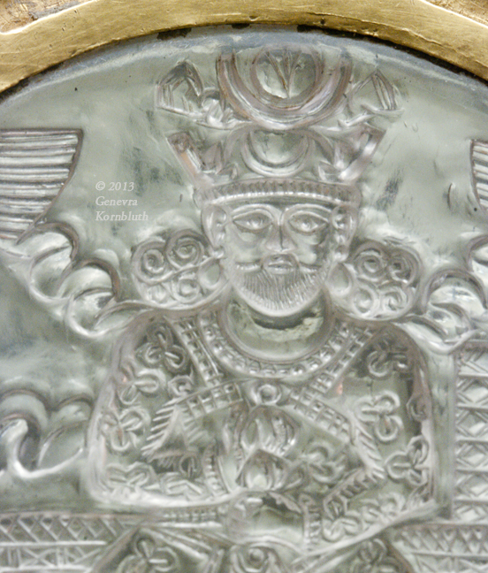 Historical Archive: Cup of Chosroes, Coupe de Chosroès made for the Sassanian king Chosroes I (Khosrau I, Kasra), reg. 531-579 formerly in the treasury of Saint-Denis, known as the Cup of Solomon (Tasse de Salomon) Gold, rock crystal, red and green glass. Diameter 28 cm. Relief on exterior of bowl, interior smooth. Paris, Cabinet des Médailles 56.95, Chab. 2538 |