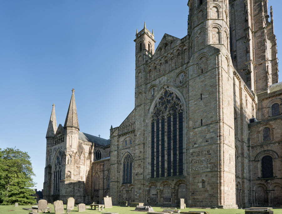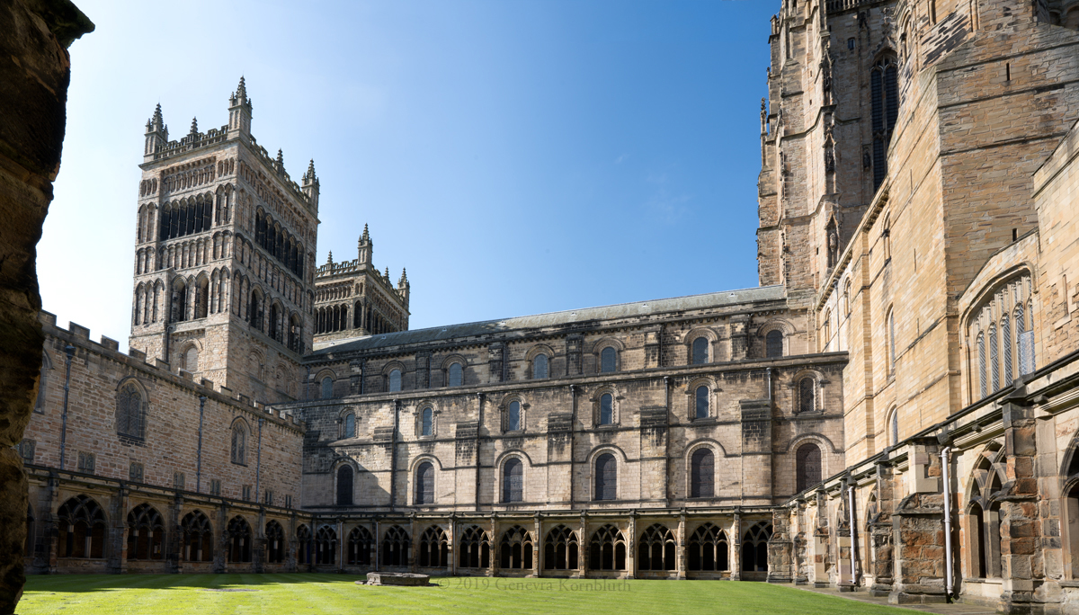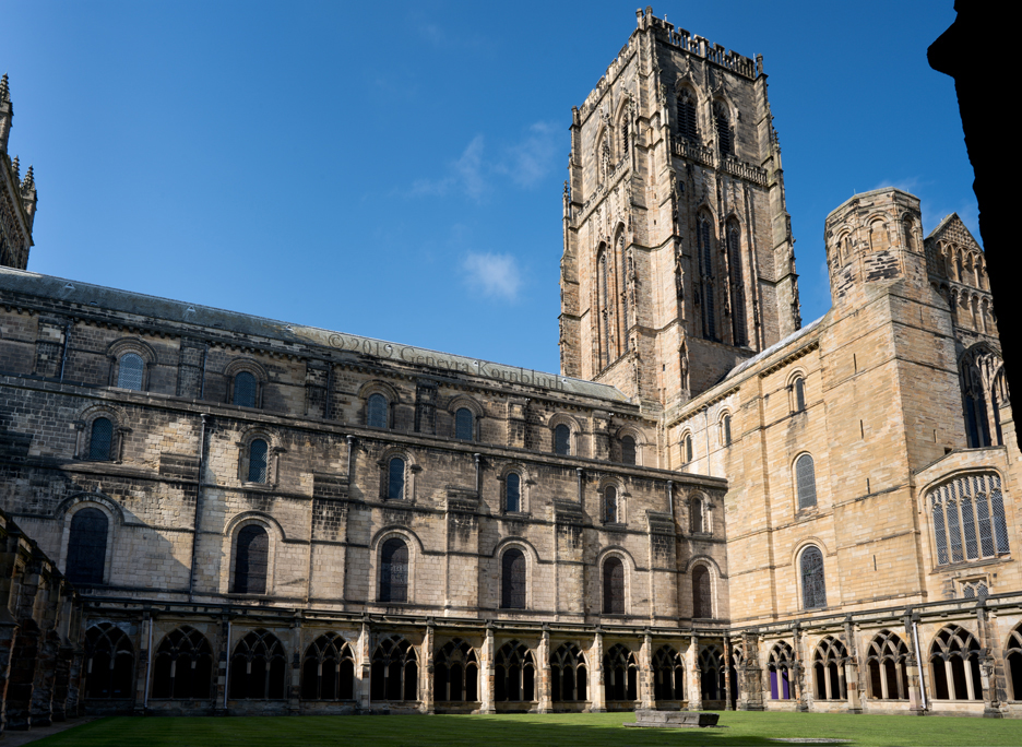 Historical Archive: Cathedral Church of Christ, Blessed Mary the Virgin and St Cuthbert of Durham Exterior and Cloister present building begun in 1093 under Bishop William of St Calais choir complete by 1104, nave 1100-1133 western Galilee Chapel (Lady Chapel) 1175-89 western towers around 1200, spires removed 1658, parapets and pinnacles 1801 eastern transept 1242-90, Richard of Farnham probably master mason central tower 1465-74, second storey around 1490, upper part refaced 1859 cloister current form late 15th c., tracery 1764-69, renovations 19th c. entire building: outer 2 to 4 inches of weathered exterior stone removed after 1777 |