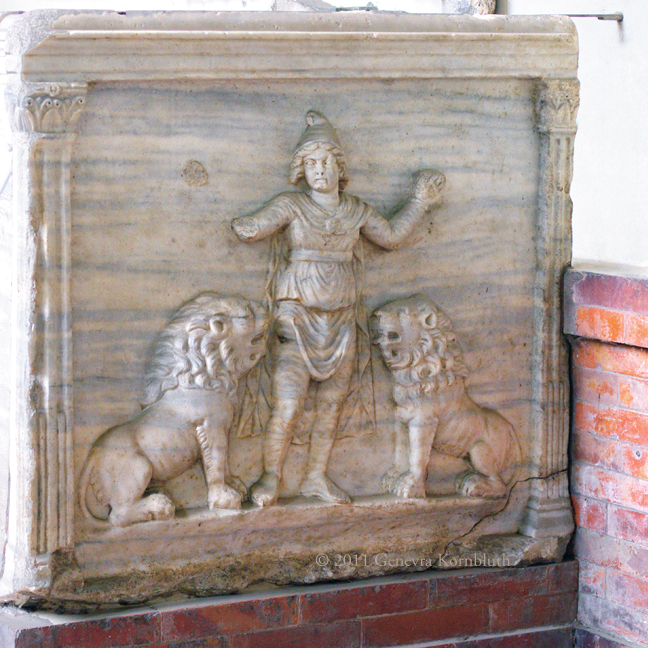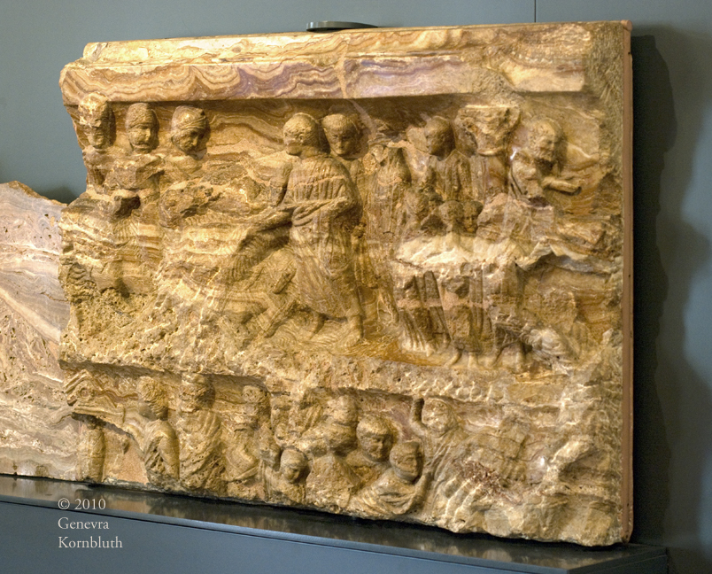 sarcophagus fragment from the monastery of St. Angela Merici, Church of St. Afra, 'African onyx' marble, mid 4th c., Brescia Museum of Santa Giulia MR5852