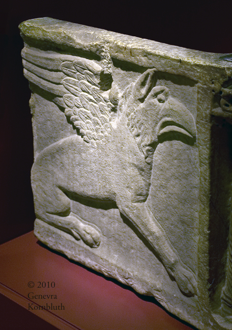 columnar sarcophagus with miracle scenes and gryphons, marble, late 4th c., Leiden Pb 35