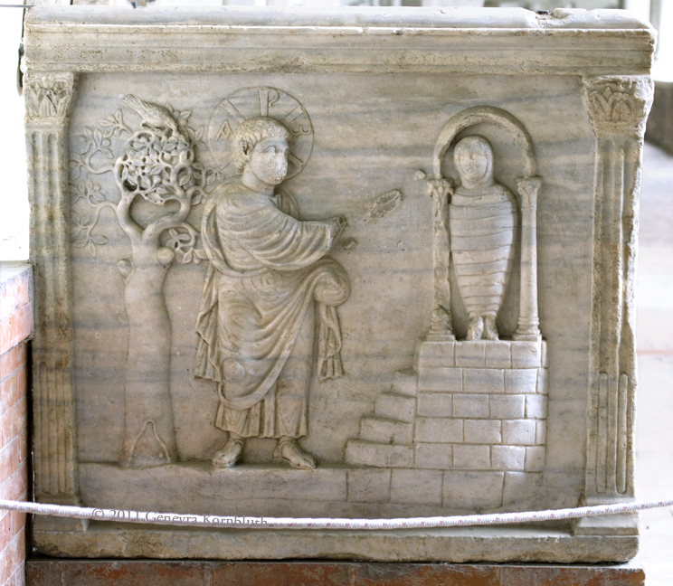 Raising of Lazarus: sarcophagus from S. Giovanni Battista, Ravenna, marble, early 5th c., Ravenna Museo Nazionale 600. Image with no digital fill.