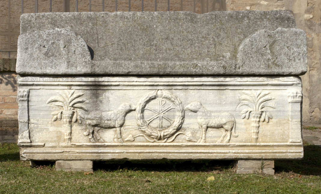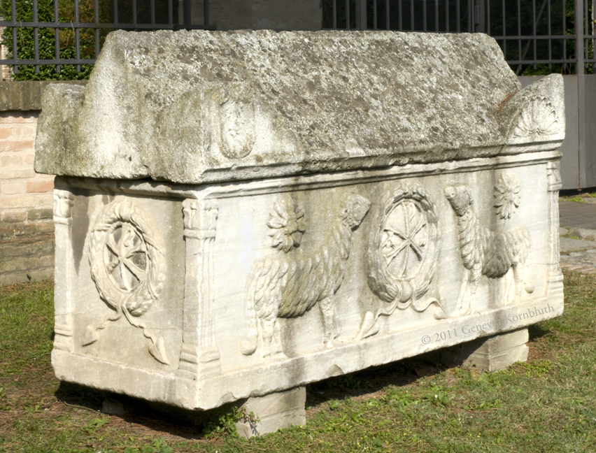 sarcophagus (lid not original), Greek marble, mid 5th c., courtyard of San Vitale, Ravenna, inv. no. 368