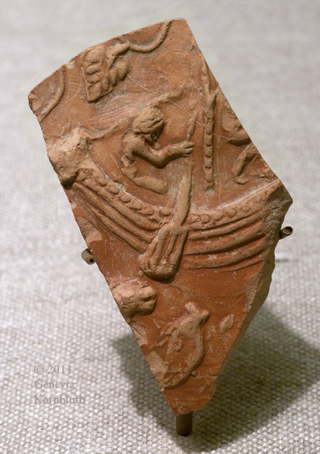 man in boat and fish from Antioch of Pisidia, ceramic, Roman (poss. Christian), KM 0000.09.3898
