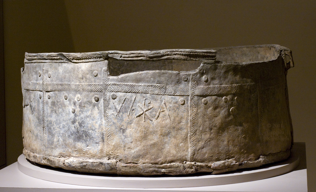 lead tank (font?) from Icklingham (Eng.), 4th c., BM 1946,0204.1