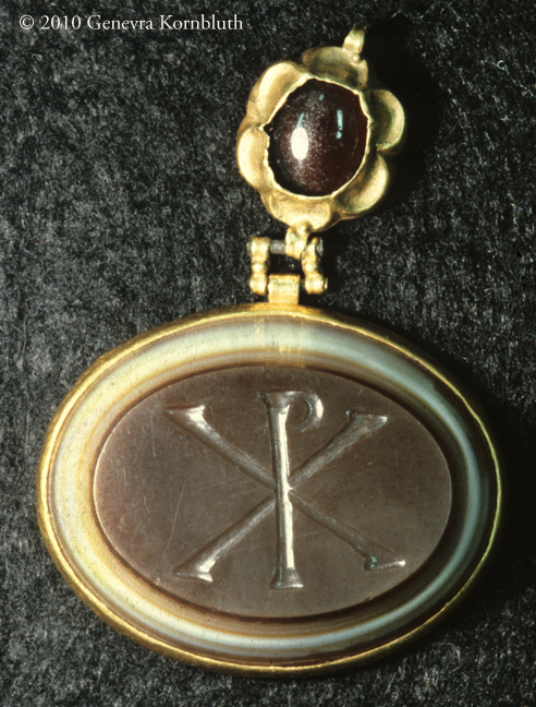 Christogram, banded agate in gold with garnet, 4th c. or modern, Virginia Museum of Fine Arts