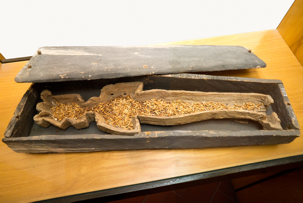 Osiris corn mummy, earth/cereals/linen/wood/wax/gold, 1st-2nd c. CE, Bologna EG/KS 342, which has its own page