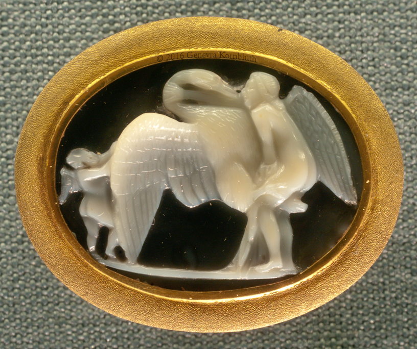 Leda and the Swan, agate cameo, 1st c. BCE Alexandria, in later gold mount, Hermitage ГP-12692