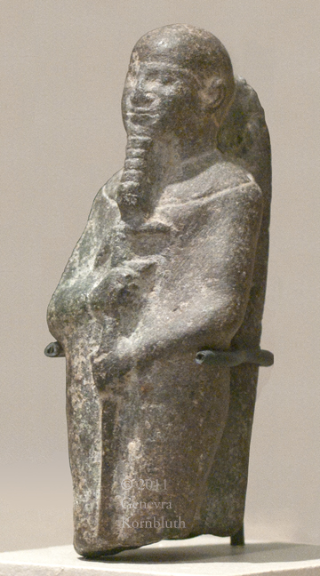miniature Ptah, stone, 26th dynasty Saite period 685-525 BCE, KM 1971.02.0149. For frontal view see Kelsey.