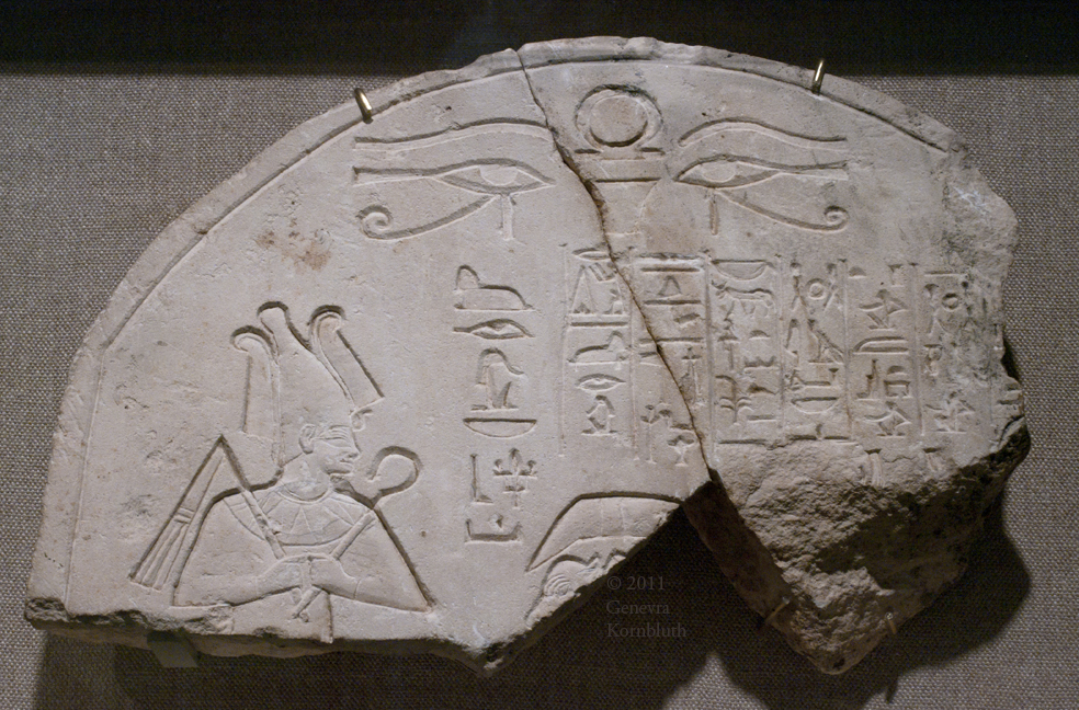 Osiris and inscription from Abydos or Thebes, limestone, New Kingdom later 18th dynasty (c.1550-1295 BCE), KM 1971.02.0191