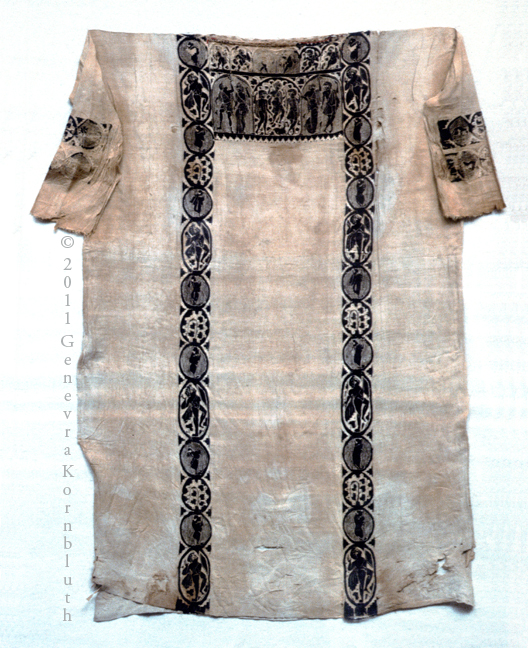 Artemis, Apollo, hero, satyrs, and Maenads on a woman’s tunic, linen and wool, 4th-5th c. Akhmim, Pushkin 5832