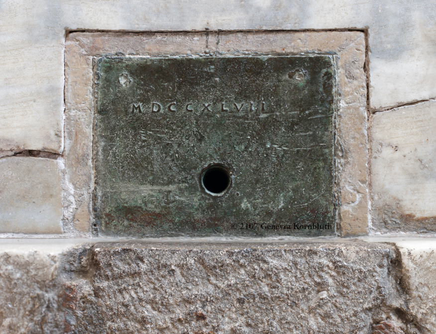 1747 plaque on font exterior, in Ravenna, Orthodox baptistery, which has its own pages.
