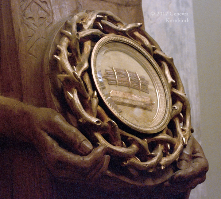 silver gilt and glass reliquary, 1833 with relics from Ste. Chapelle, Paris; held by St. Louis, linden wood, A. Carvin 1927; Sens CT