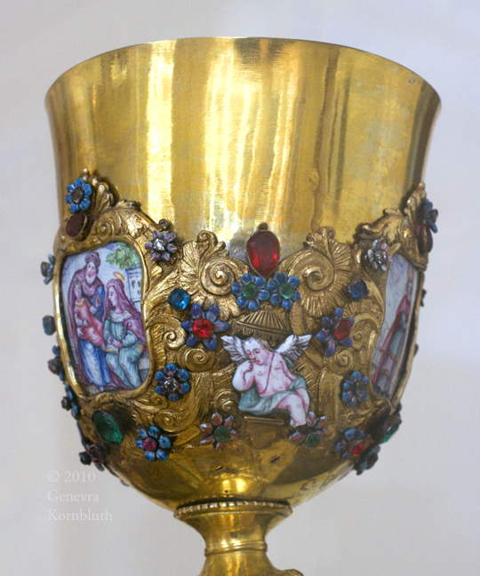 model chalice, design Augustus Welby Northmore Pugin, made by John Hardman Co., England c.1849. Gilt metal, enamel, stone. AIC 1981.640