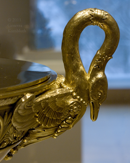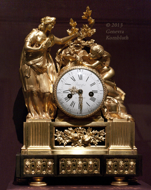 Mantel clock with priestess and Cupid sacrificing to Venus, Joseph Buzot c.1780, gilded bronze, ebony, porcelain, and glass, UMMA 2001/2.82. This work has its own page.