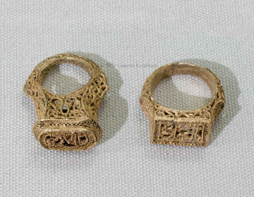gold rings with filigree and granulation; Egypt, Syria, or Iran 11th-12th c., BM 1954,0412.1 and AF2448. For another view see BM.