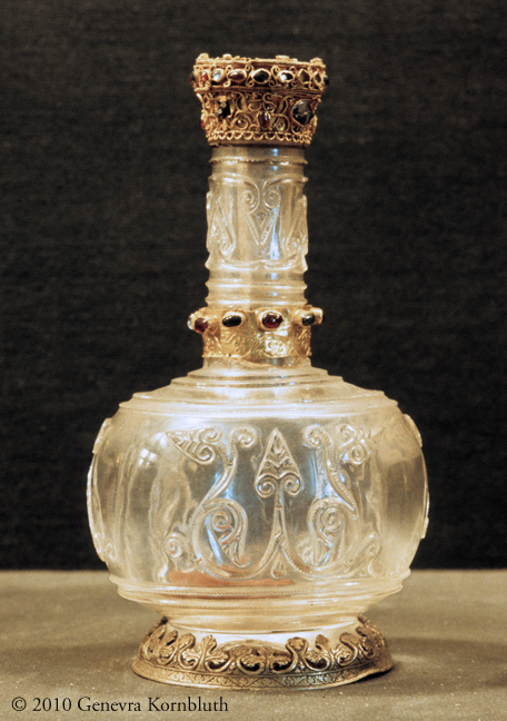 rock crystal flask, Fatimid Egypt 909-1171, in Weddeghe Velstede, silver gilt reliquary monstrance 1433, AIC 1962.91. This work has its own page.
