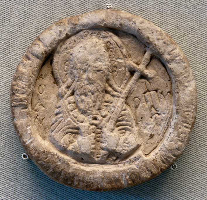 'seal of St. Servatius', jasper intaglio, 10th-12th c. Byzantine, Maastricht, Sint Servaas treasury. For reverse uterine amulet see Maastricht.