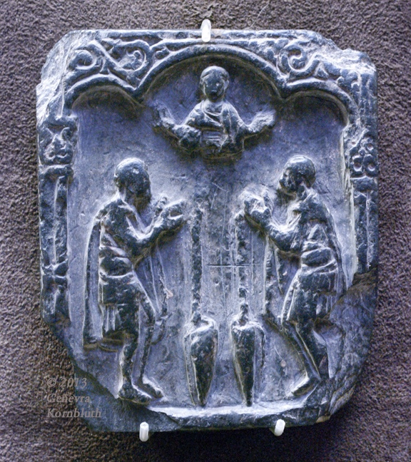 Military saints with spears and shields, Byzantine schist icon, 11th-13th c., Cluny Cl.21602